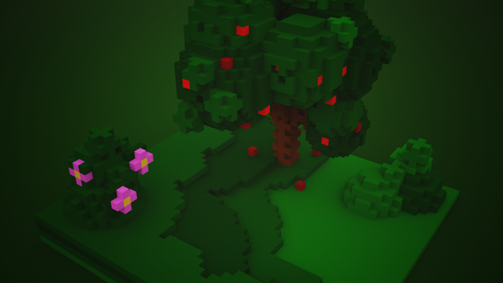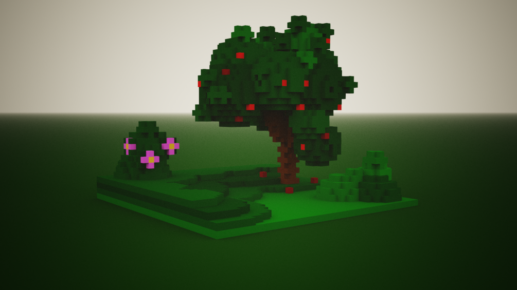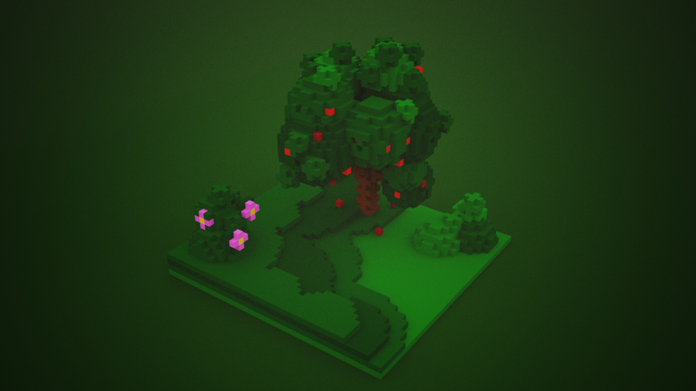 Apple tree and green corner voxel. Zip contains .vox, .obj, .mtl and .png files.