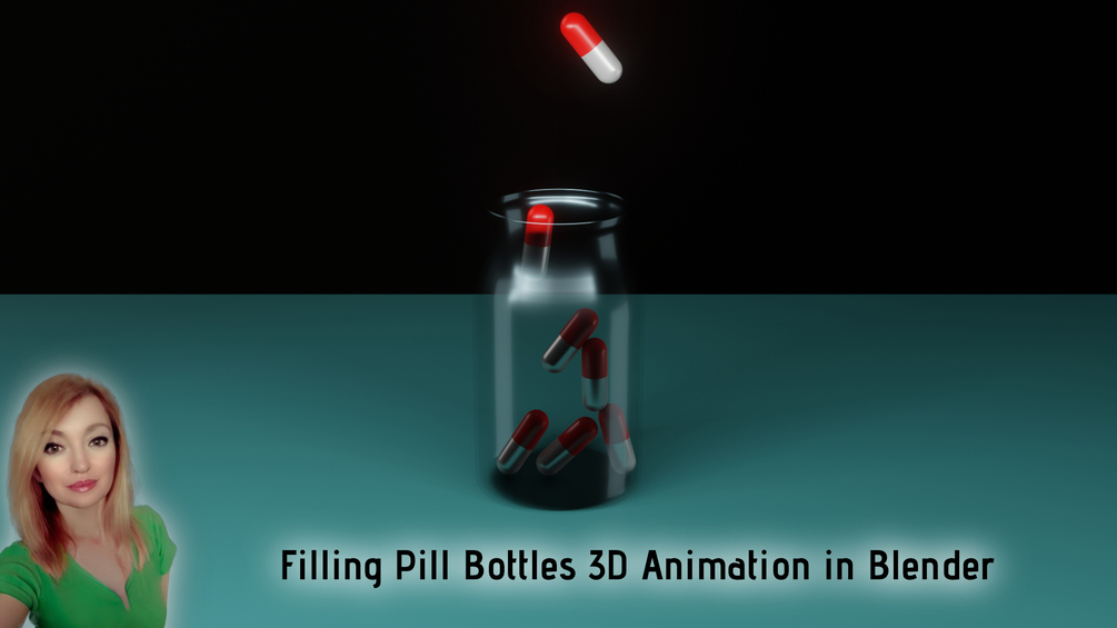 Filling Pill Bottles 3D Animation in Blender class will help you learn how to quickly create seamless looping animation of pills falling down and filling glass bottles.